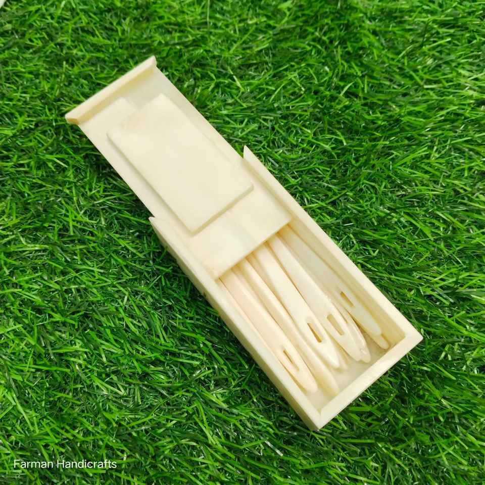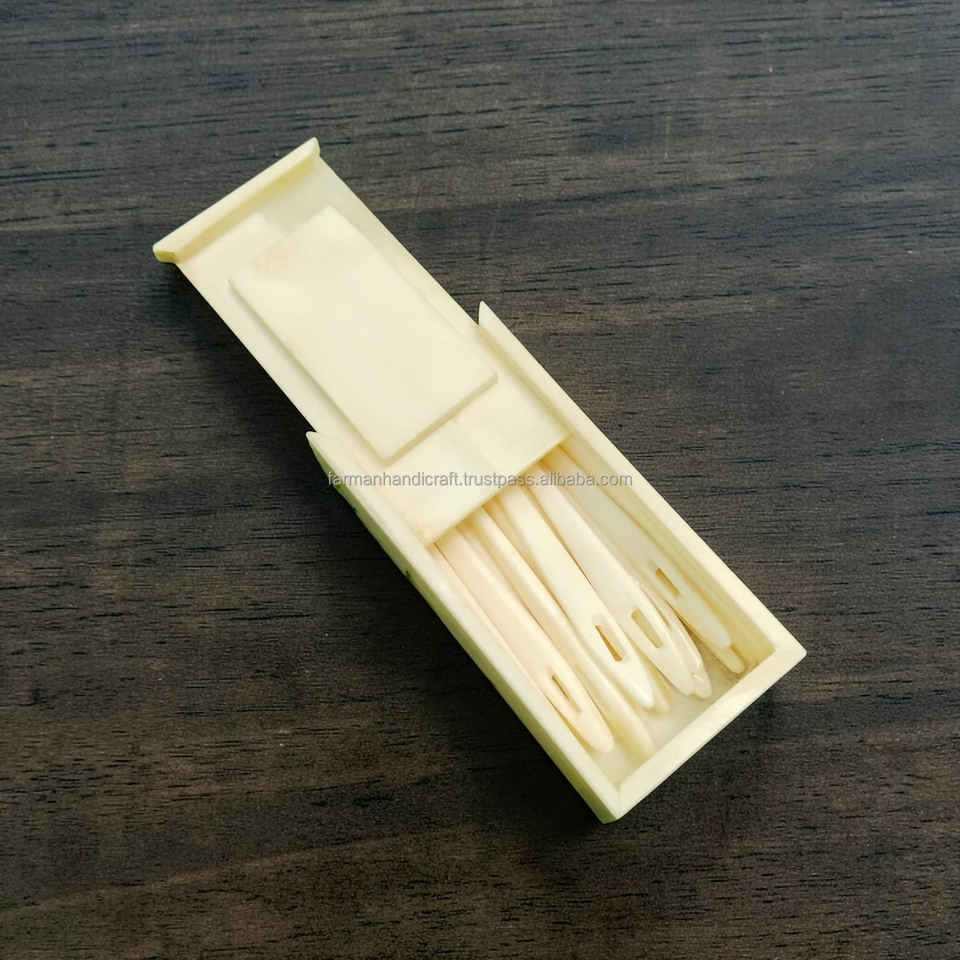 Estuche para Agujas Hecho a Mano con Hueso de Búfalo Blanco, Ecológico, Caja Deslizante Decorativa para Almacenamiento a Precio Económico