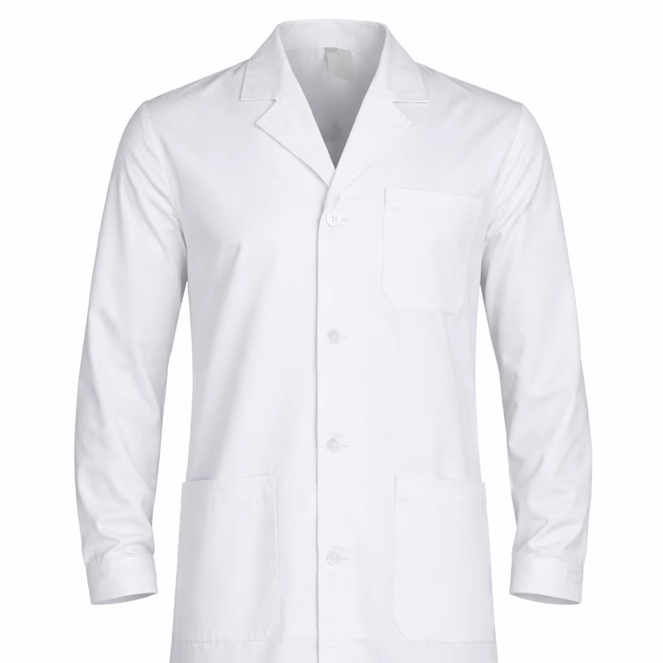 Bata de Laboratorio Blanca de Lona, Uniforme de Hospital de Longitud Completa, Tela Premium, Comodidad Durante Todo el Día, Costuras Reforzadas y Duraderas