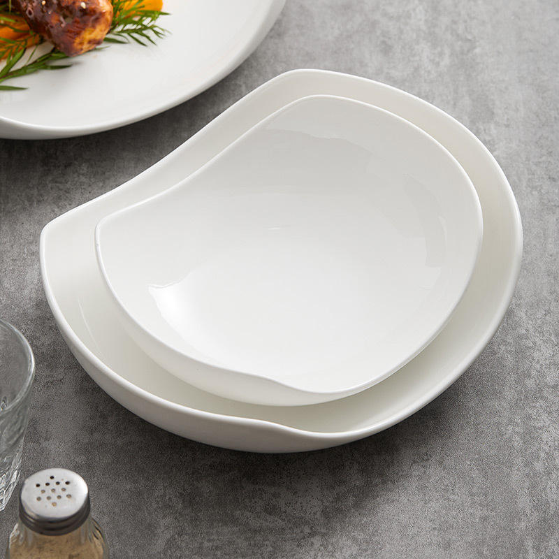 Plato cargador de cerámica blanca, bandeja para servir aperitivos de frutas irregulares, platos fríos de nueces, platos de postre para ensalada, juego de vajilla para restaurante