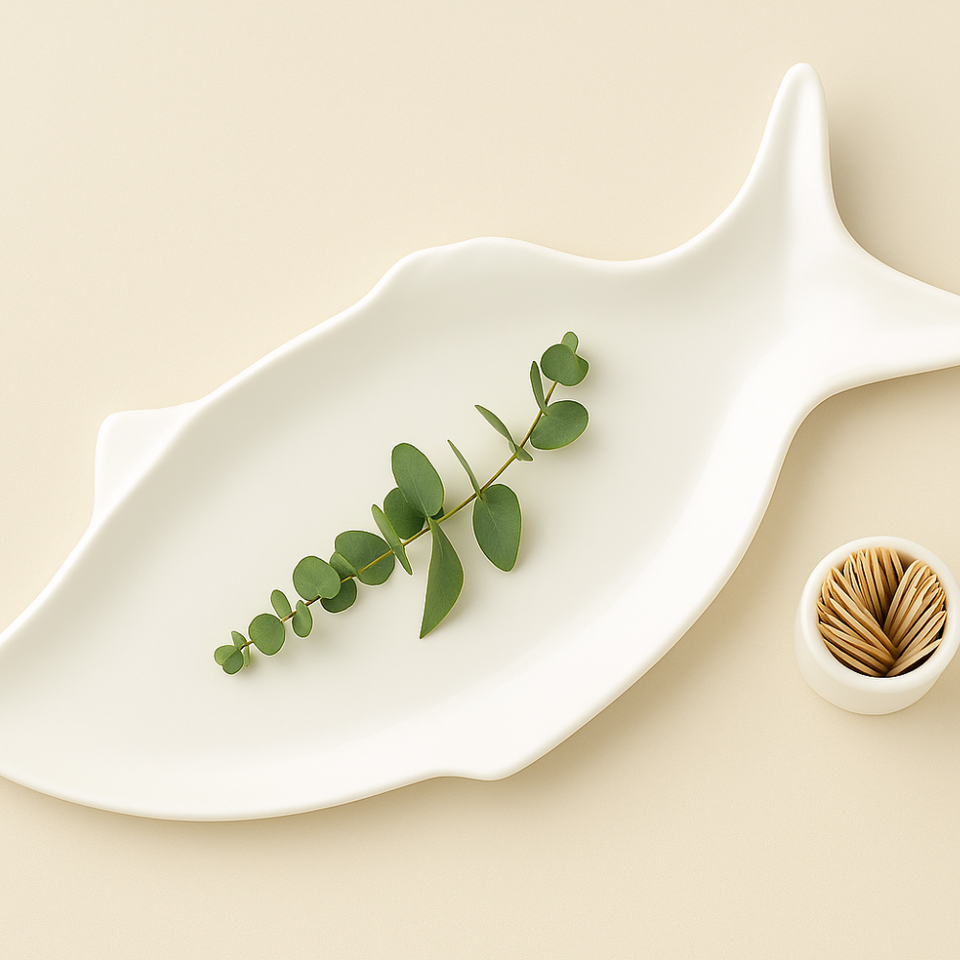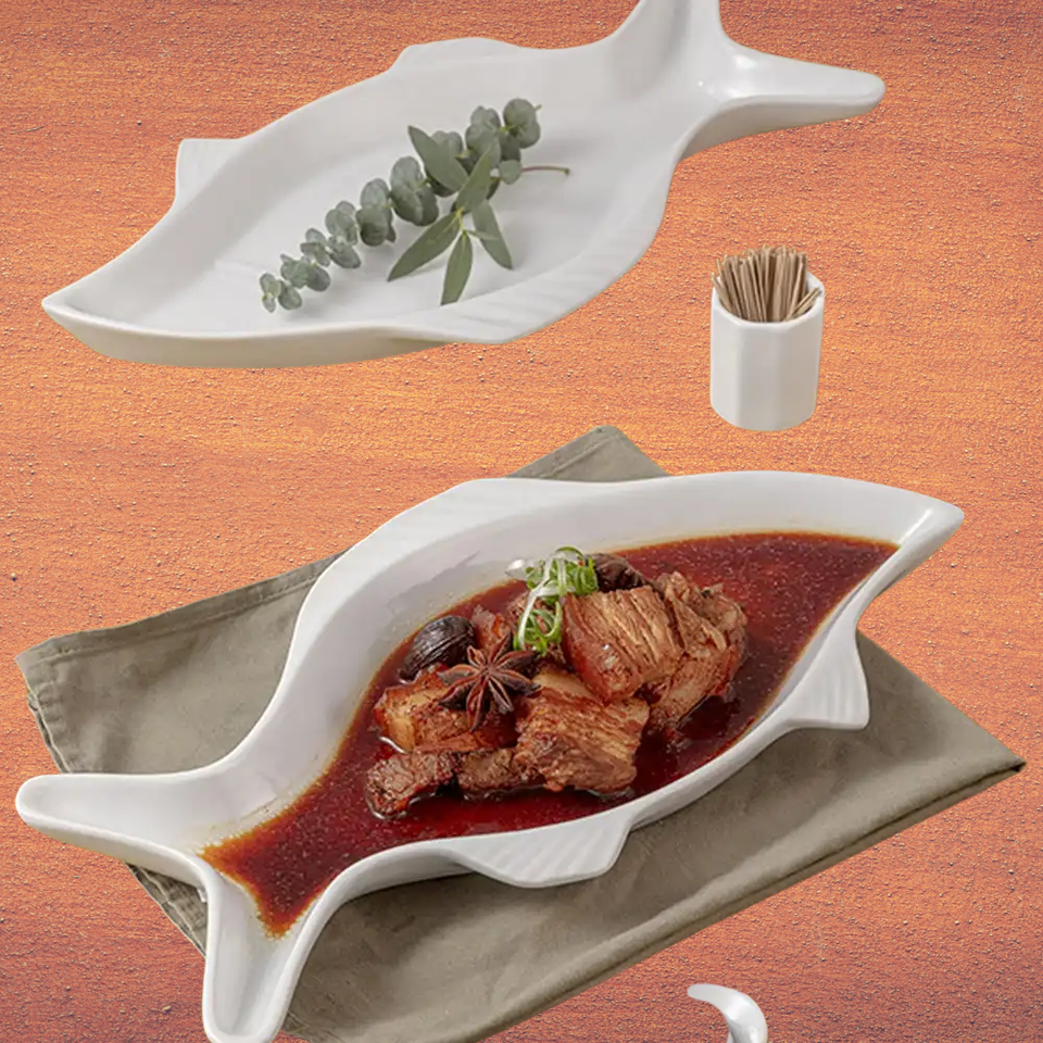 Plato de cena de cerámica blanca-Forma de pez de 2 aletas, diseño moderno, horno, ideal para restaurantes, bodas y fiestas