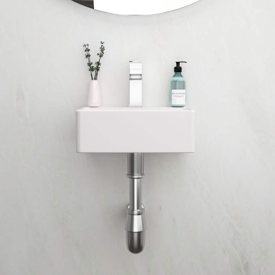 Lavabo Rectangular de Cerámica Blanca para Baño con un Solo Orificio para Grifo