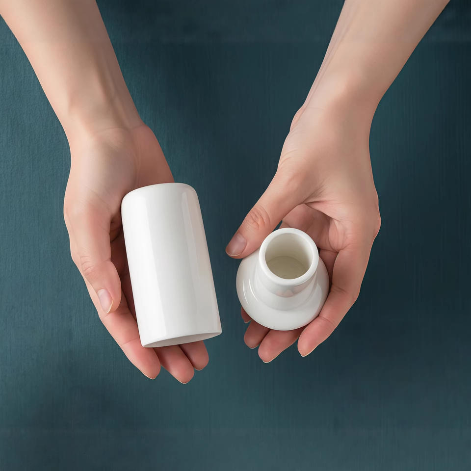 Porta Palillos de Cerámica Blanca Octogonal con Tapa de 4x7.5cm para Vajilla de Hotel y Restaurante