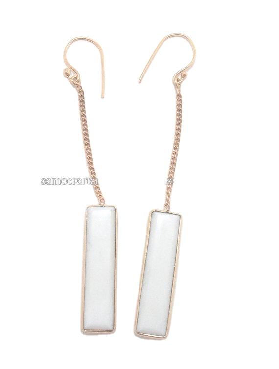 Nombre de la Joyería:Pendientes de oro rosa con calcedonia blanca