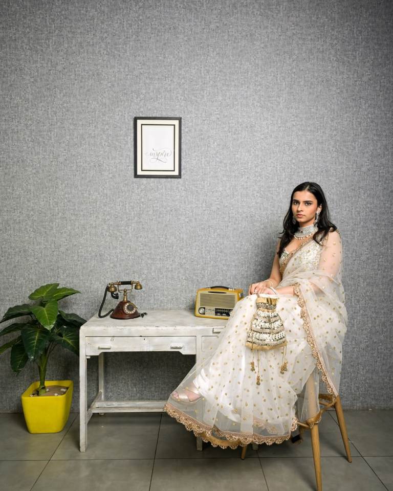 Sari de red de mariposa de color blanco con hilo de fantasía y lentejuelas Trabaja con borde de encaje, función de boda Use sari.