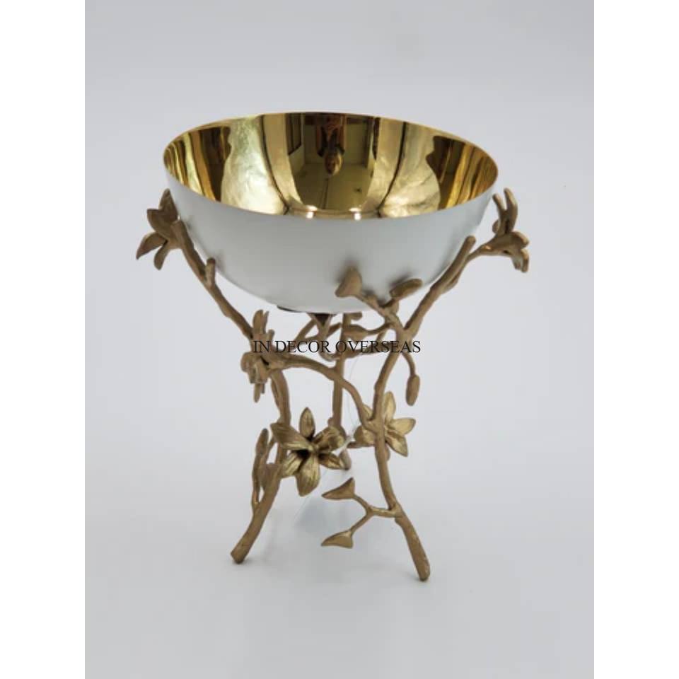 Color blanco Chapado en oro de alta calidad Interior Resistente al calor Cuenco de metal Soporte de flores Exterior Revestimiento en polvo Diseñador Exterior