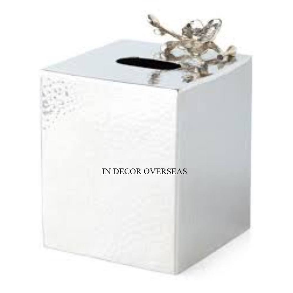 Servilletero y caja de pañuelos de Metal de alta calidad con textura martillada chapada en oro de diseñador de flores recubiertas de polvo de Color blanco