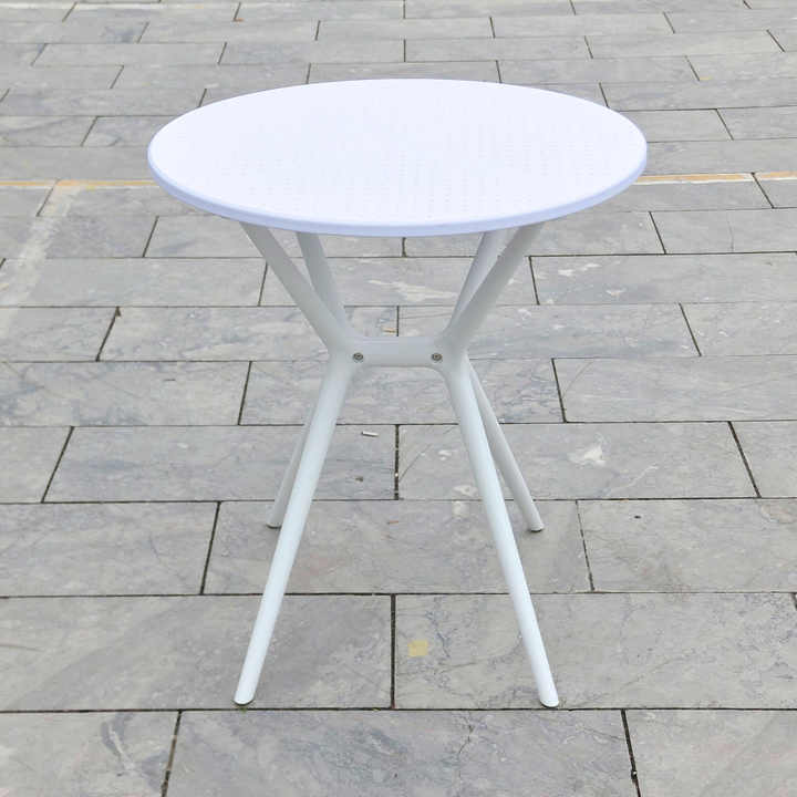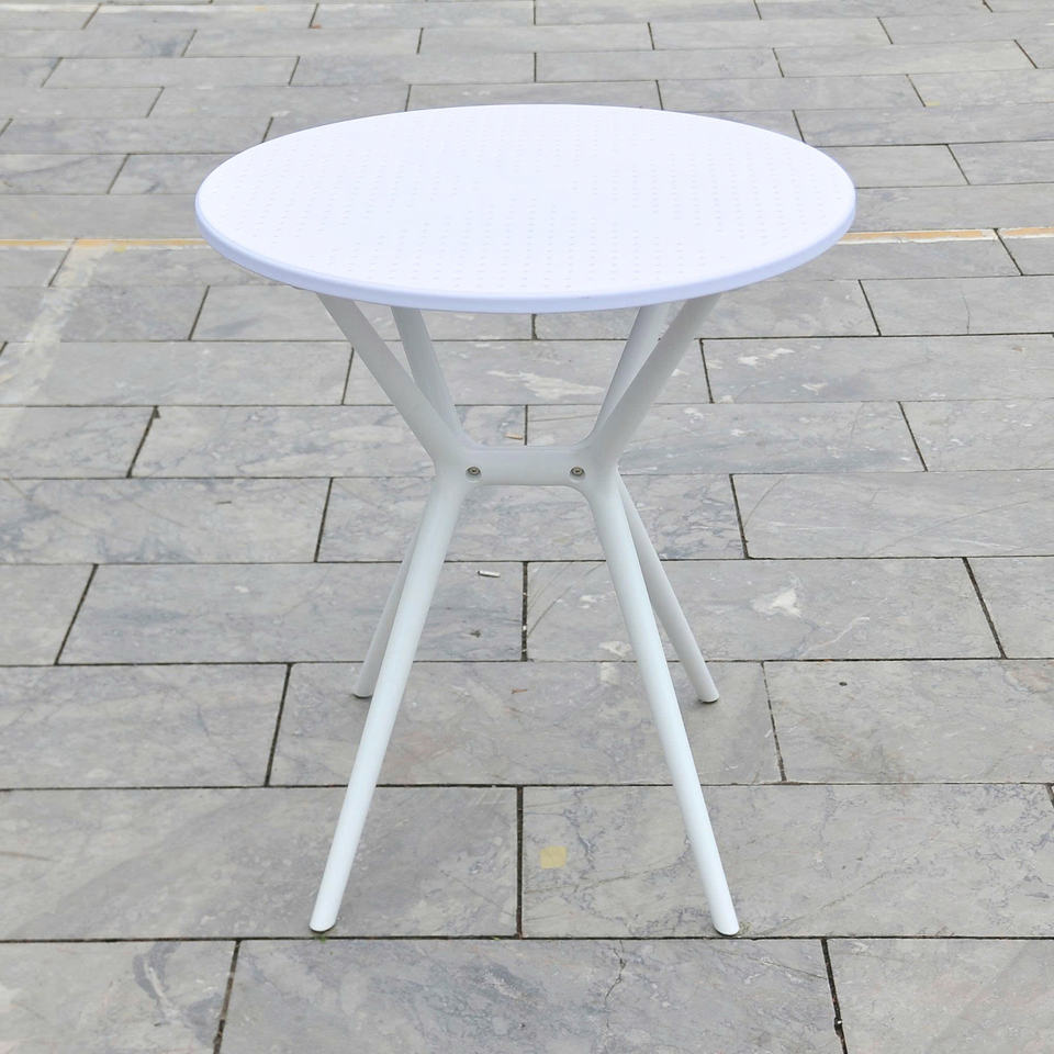 Mesa Redonda de Plástico Moldeado de Color Blanco con Base en Forma de X - Una Silla Moderna y Compacta para Exteriores, Ideal para Jardín y Veladas