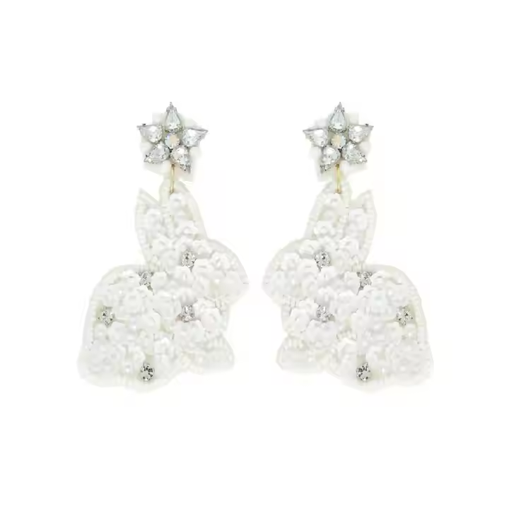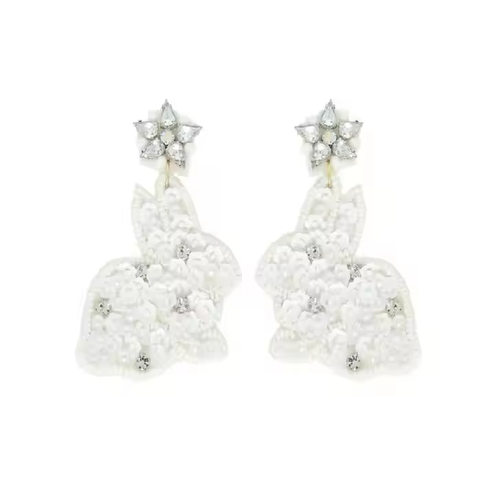 Pendientes de Cuentas Bordadas de Conejo Blanco, Joyería Artesanal de Cuentas de Arroz, Estilo Clásico para Mujer, Directo de la India