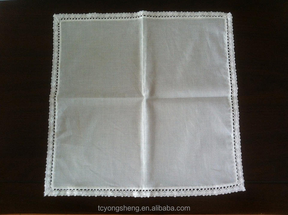 Blanco pañuelo de algodón con borde de encaje de ganchillo