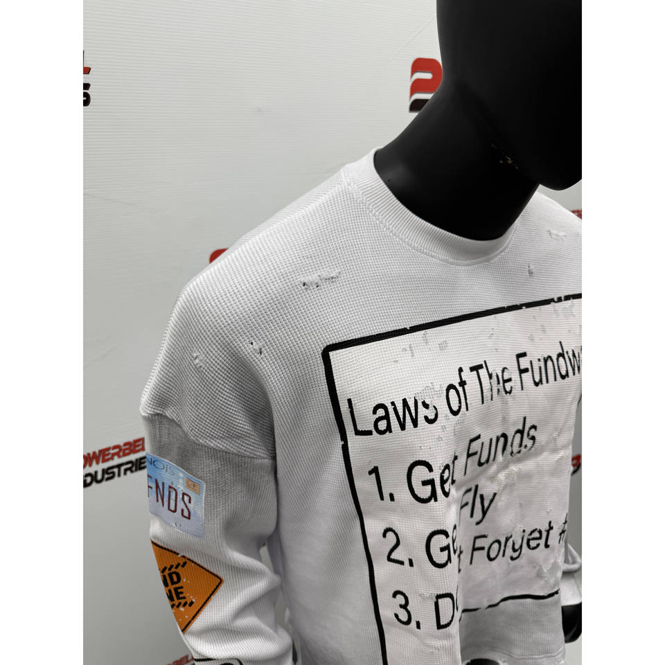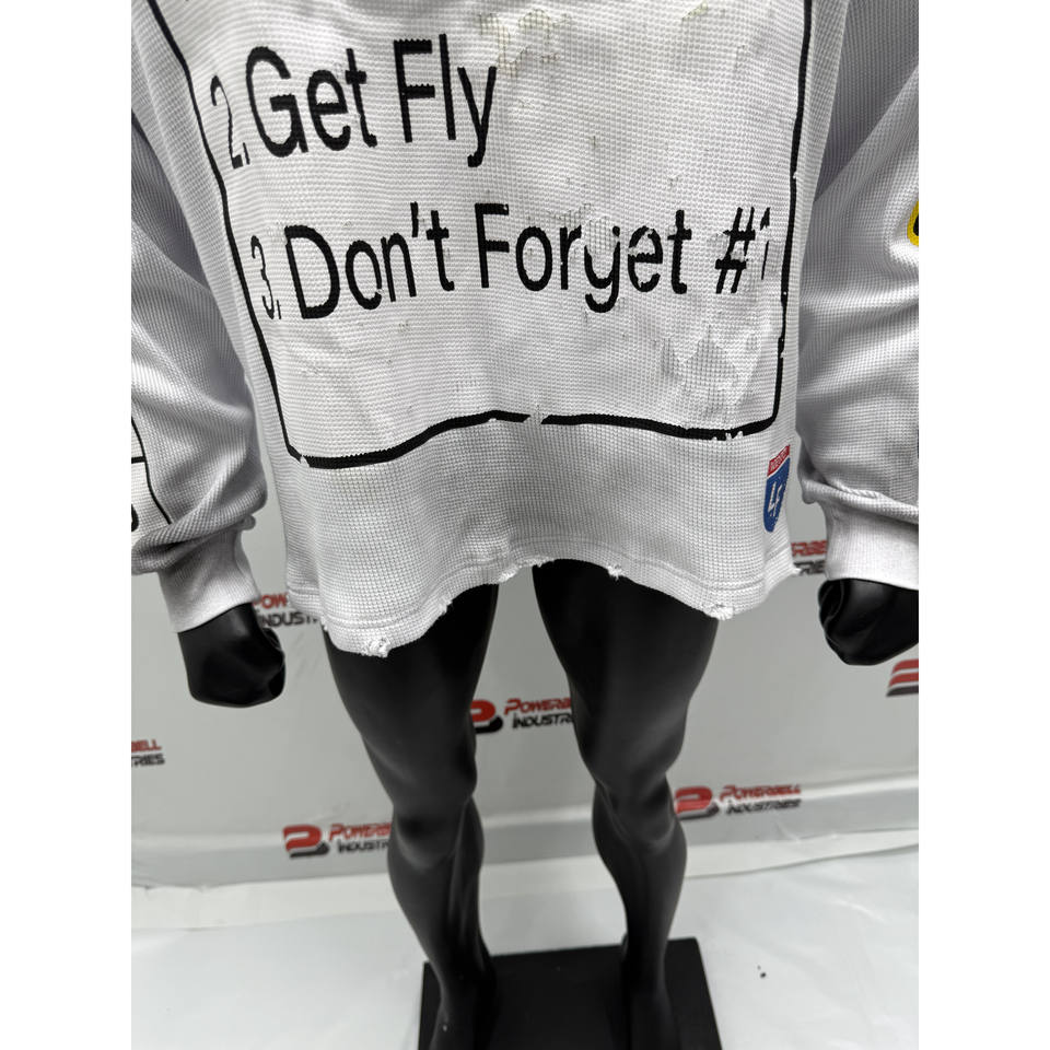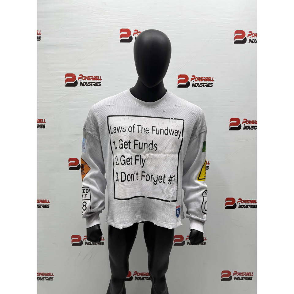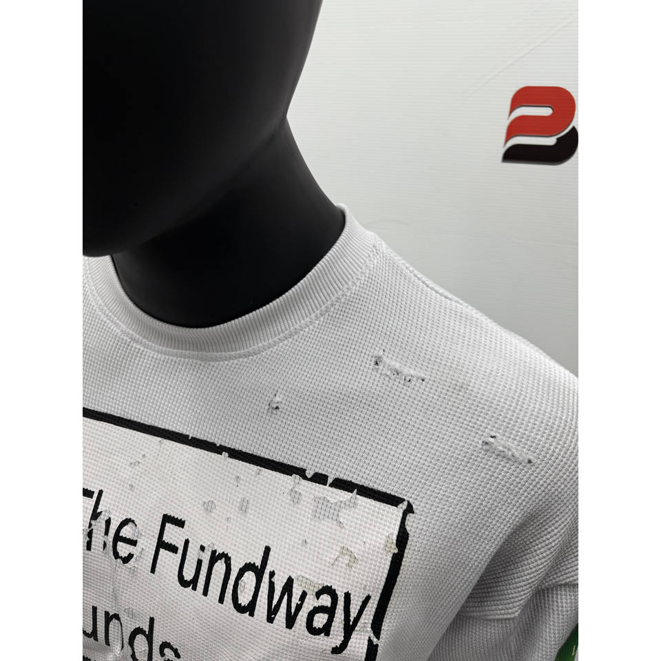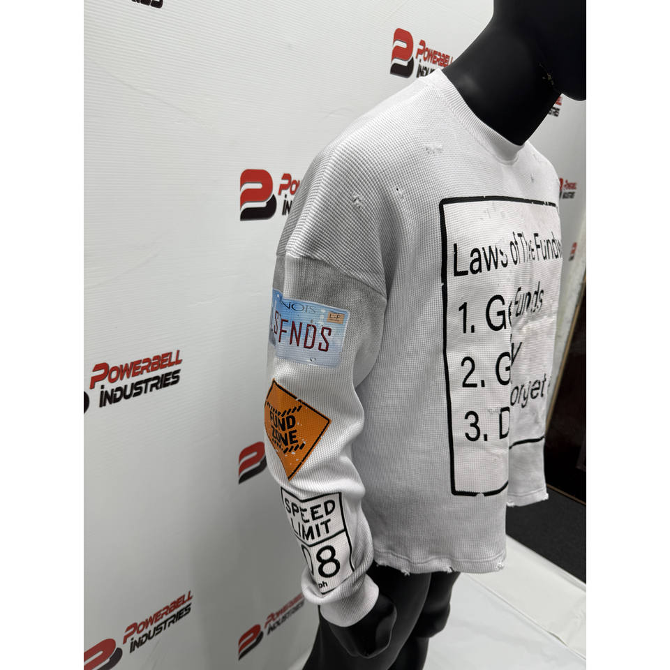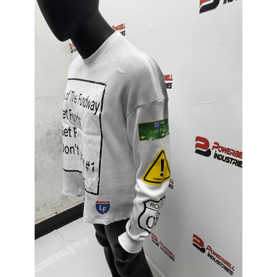 Camiseta de manga larga de punto de gofre térmico recortada blanca para hombre, camiseta personalizada rasgada con lavado sucio de gofre estampado para hombre