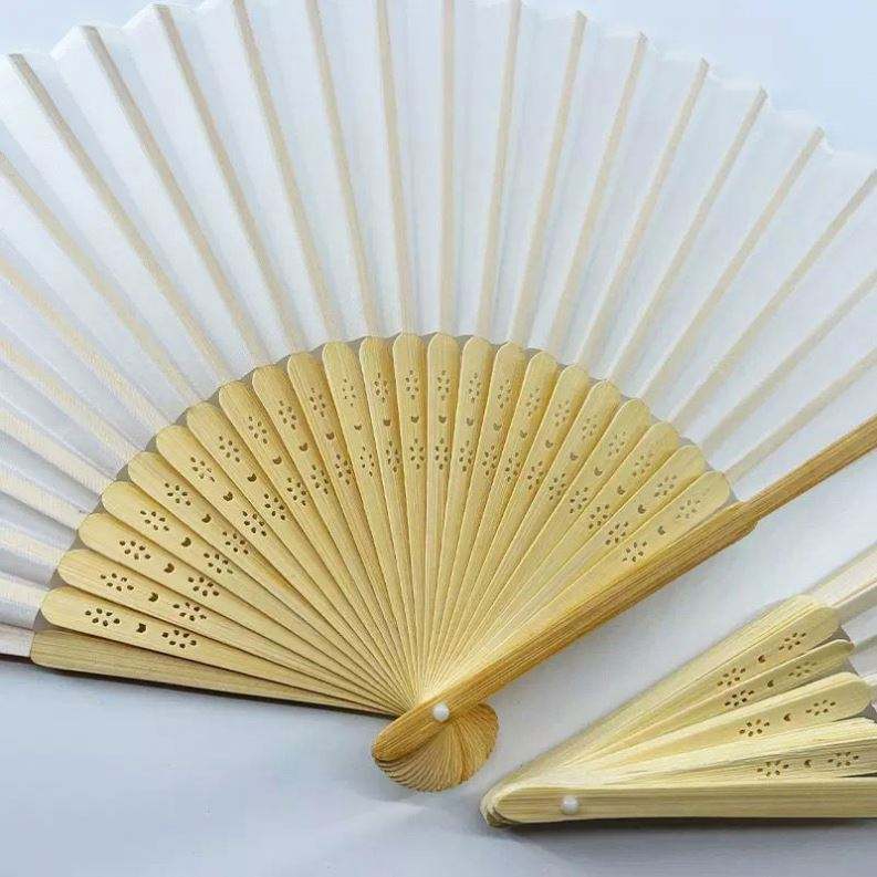 Abanico de mano personalizado blanco con logo impreso, abanicos de pestañas personalizados para boda, abanico de papel japonés portátil en blanco