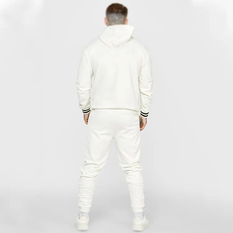 Conjunto Deportivo de Dos Piezas con Capucha y Pantalones Deportivos de Algodón 100%, Personalizado con Logotipo Impreso en Blanco, para Invierno
