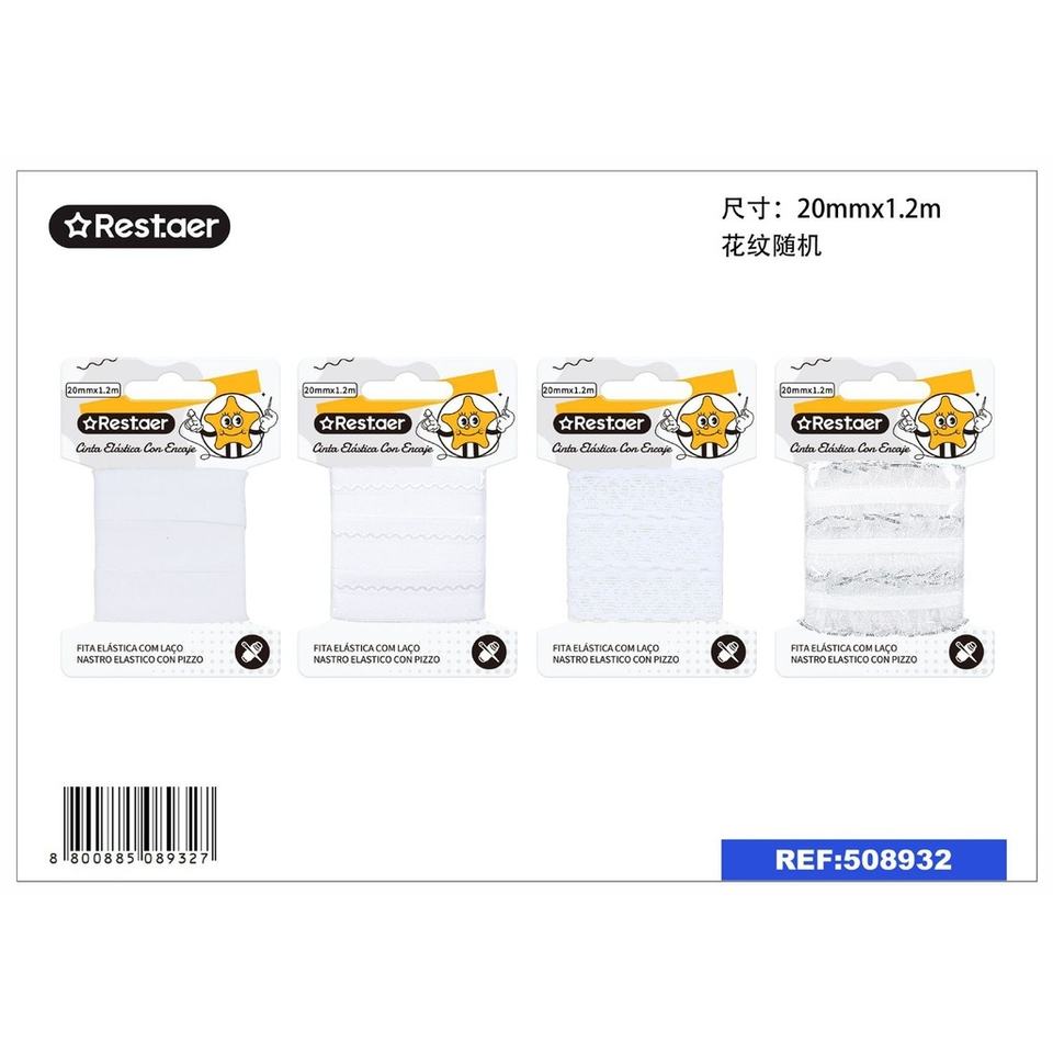 Cinta elástica blanca de doble cara 20mm X 1,2 m tafetán tejido sólido y patrón de rollo para manualidades y costura 8800885089327