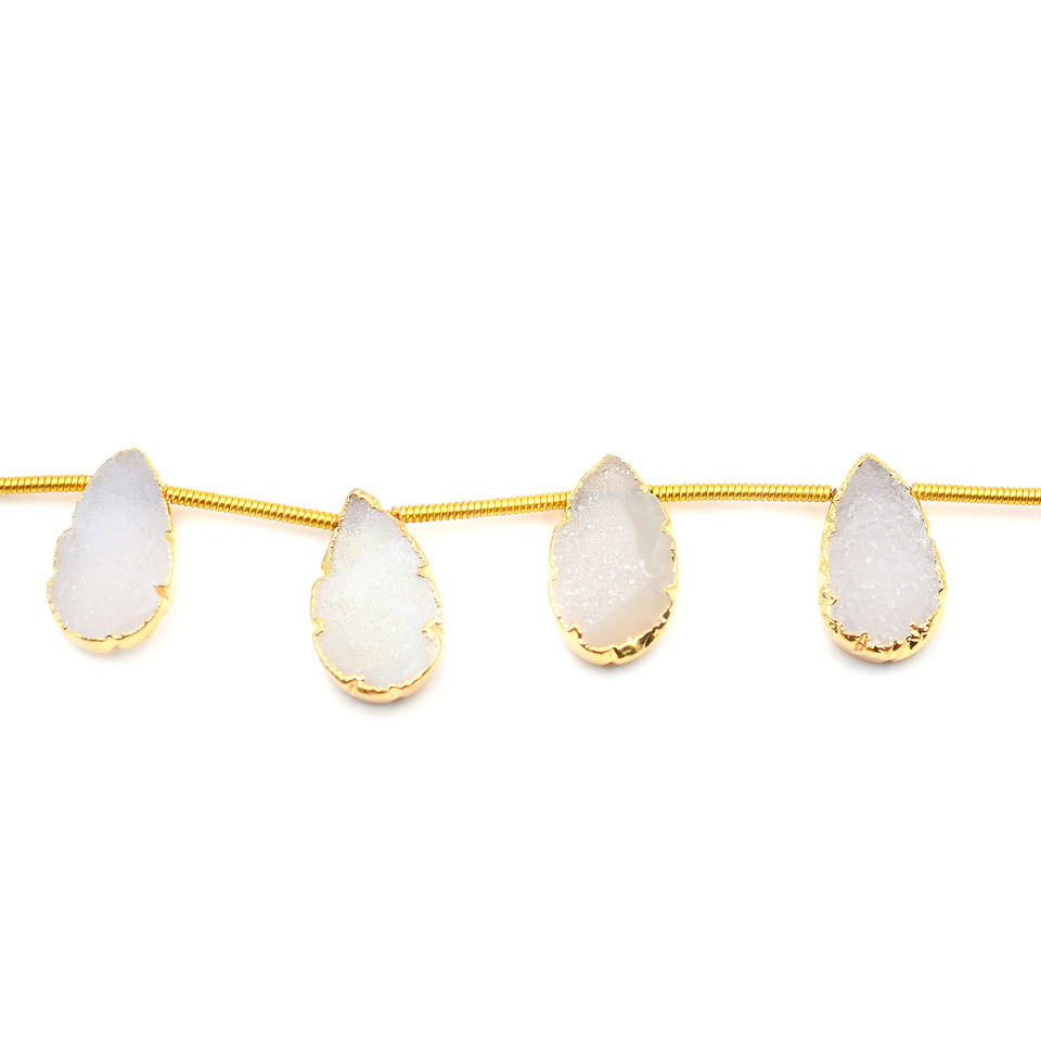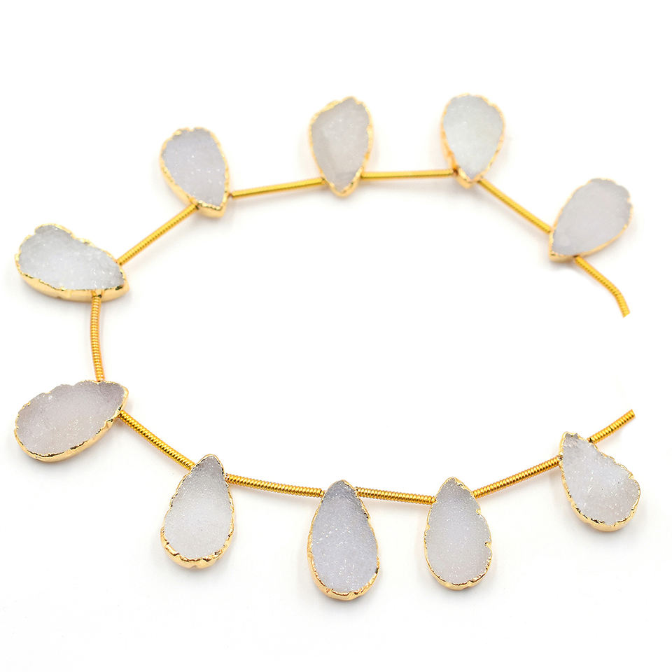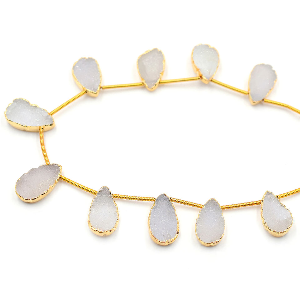 Product Name:White Druzy Side Drilled Gold Plated 10 Beads Strand