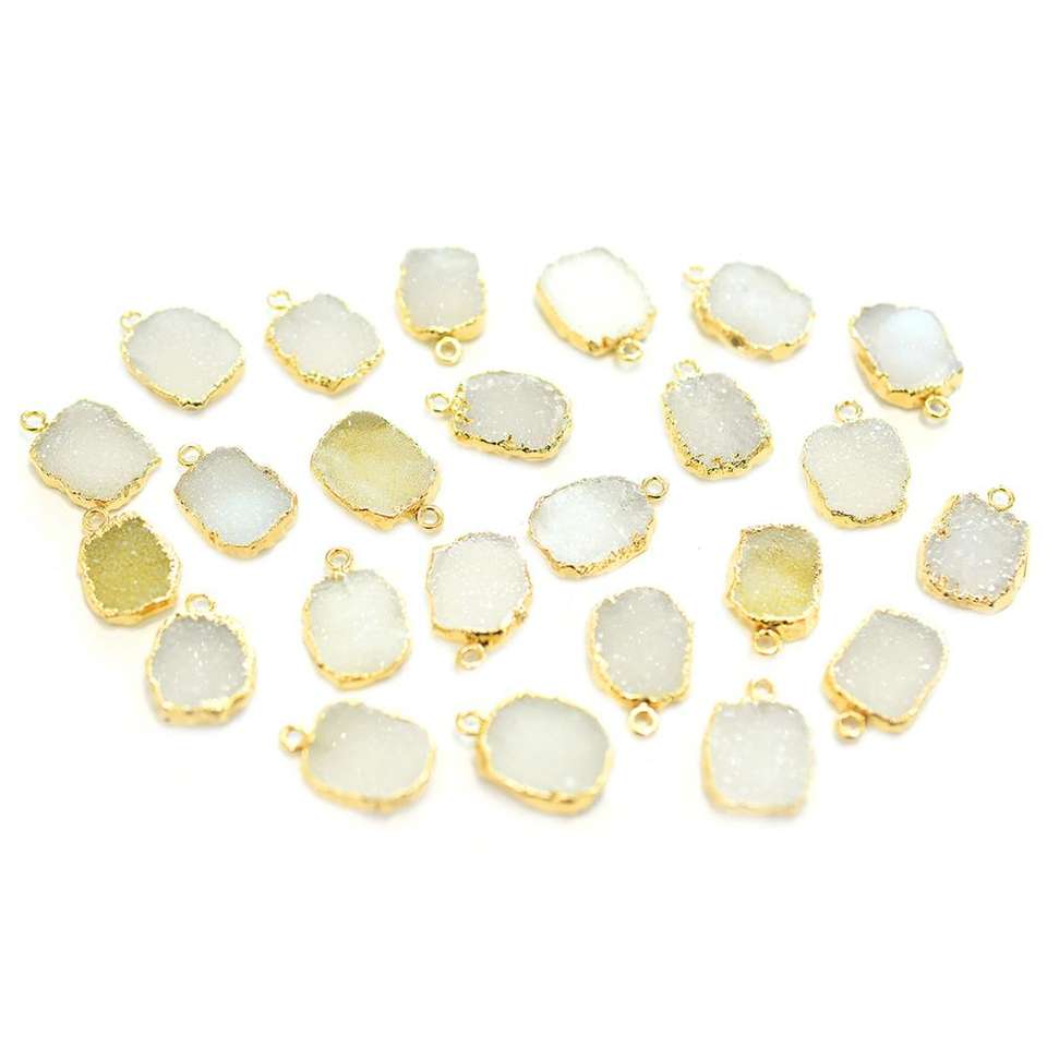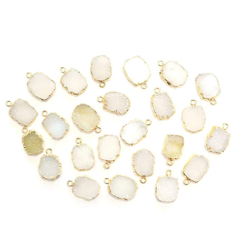Nombre del Producto:Colgante de oro con forma de rodaja y druzy blanca de 16 a 18 mm con asa