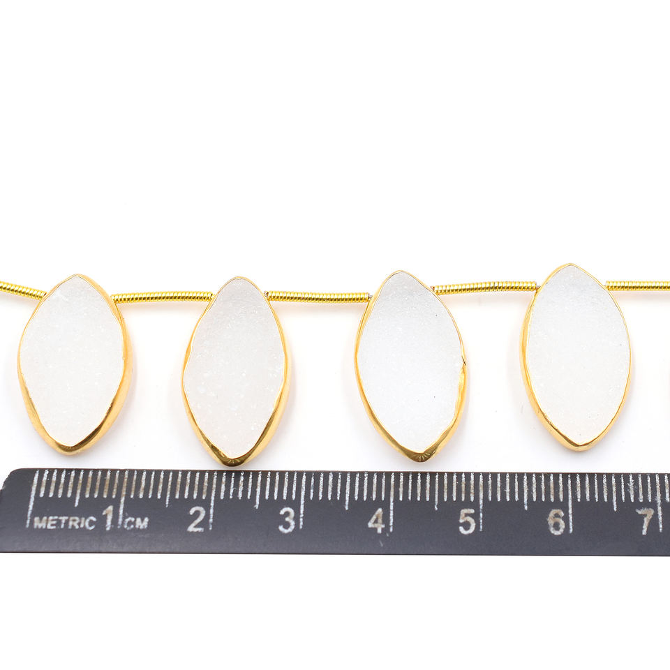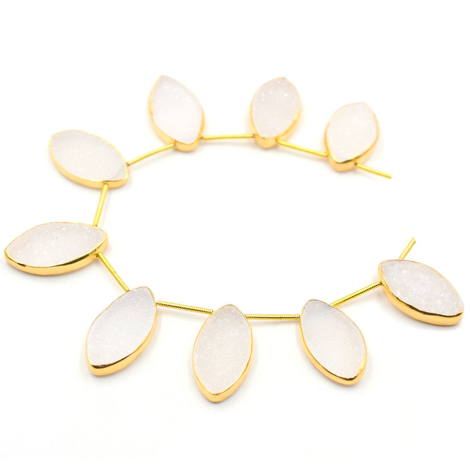 Product Name:White Druzy Silver Bezel Gold Plated Top Side Drilled 9 Beads Strand
