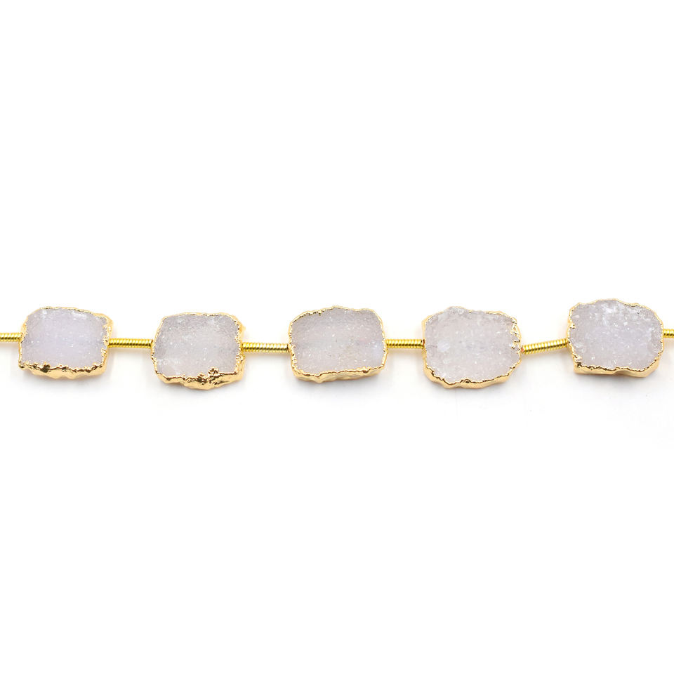 Cuentas Rectangulares de Latón con Drusa Blanca de 12-14 mm, Perforadas Rectas, Chapadas en Oro, 10 Hilos, Accesorios y Componentes para Joyería