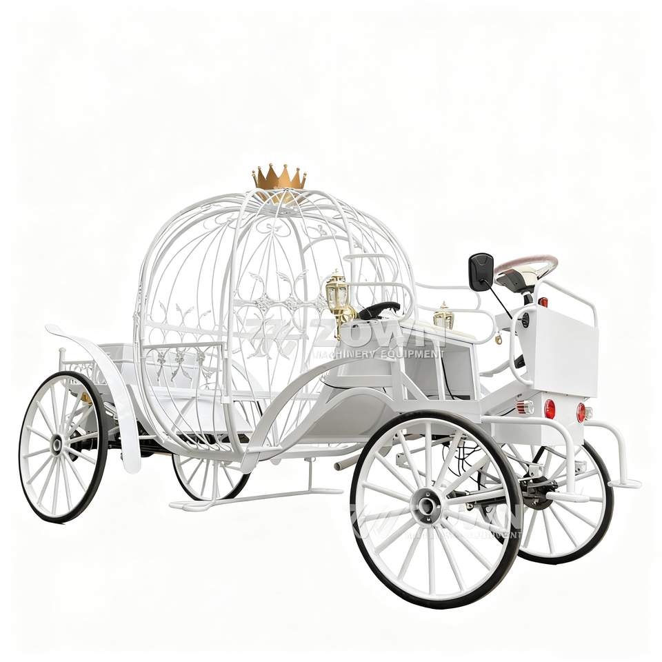 Carruaje de boda real eléctrico blanco Estilo europeo Calabaza Scenic Sightseeing Hotel Pick-up Carruaje de caballos de 4 ruedas