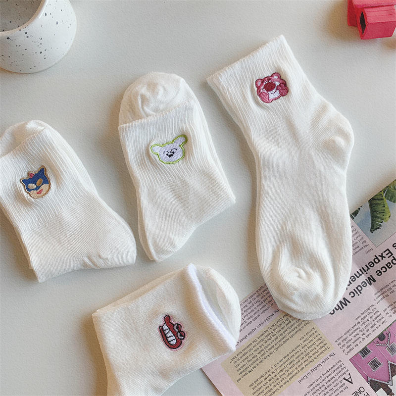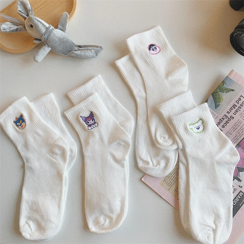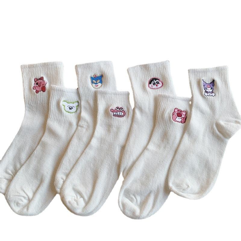 Calcetines Blancos Bordados con Dibujos Animados para Mujer, Transpirables, con Patrón de Anime, Juveniles, Casuales