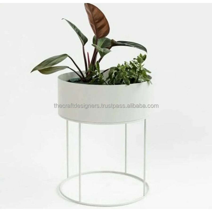 Maceta de esmalte blanco, soporte de maceta de Metal y maceta para el hogar, Hotel, oficina, decoración de interiores, macetas de alta calidad de una sola pieza
