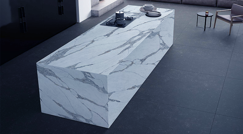 Losa de piedra de cuarzo de ingeniería blanca, encimera de cocina contemporánea artificial grande cortada a medida, garantía de 5 años para uso en apartamentos
