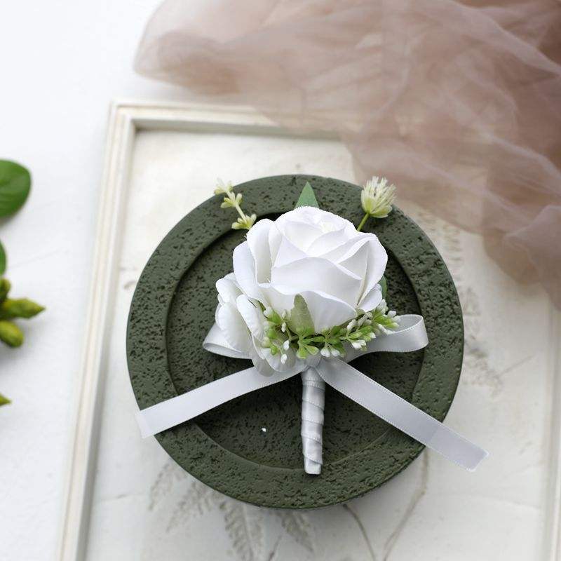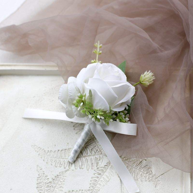 Flores de Plástico Estilo Europeo, Rosas Simuladas Blancas para Novia, Damas de Honor, Muñequeras y Flores de Pecho para Bodas, Eventos y Fiestas