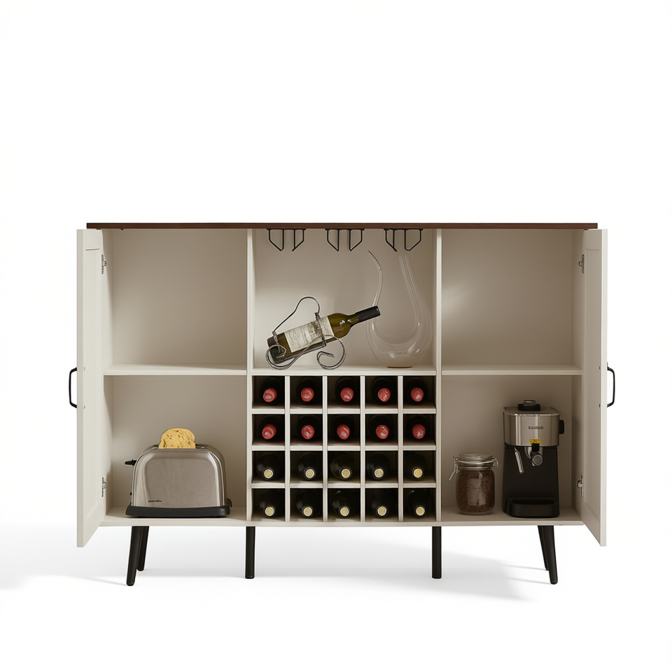 Vinoteca Blanca de Doble Puerta con Efecto Ratán, Estantes Extraíbles y Soporte para Botellas de Vidrio, Almacenamiento para Cocina