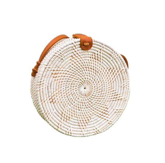 Bolsa redonda de ratán de flores blancas con margaritas blancas Bolsas de playa de macramé de ganchillo Directo del proveedor indio