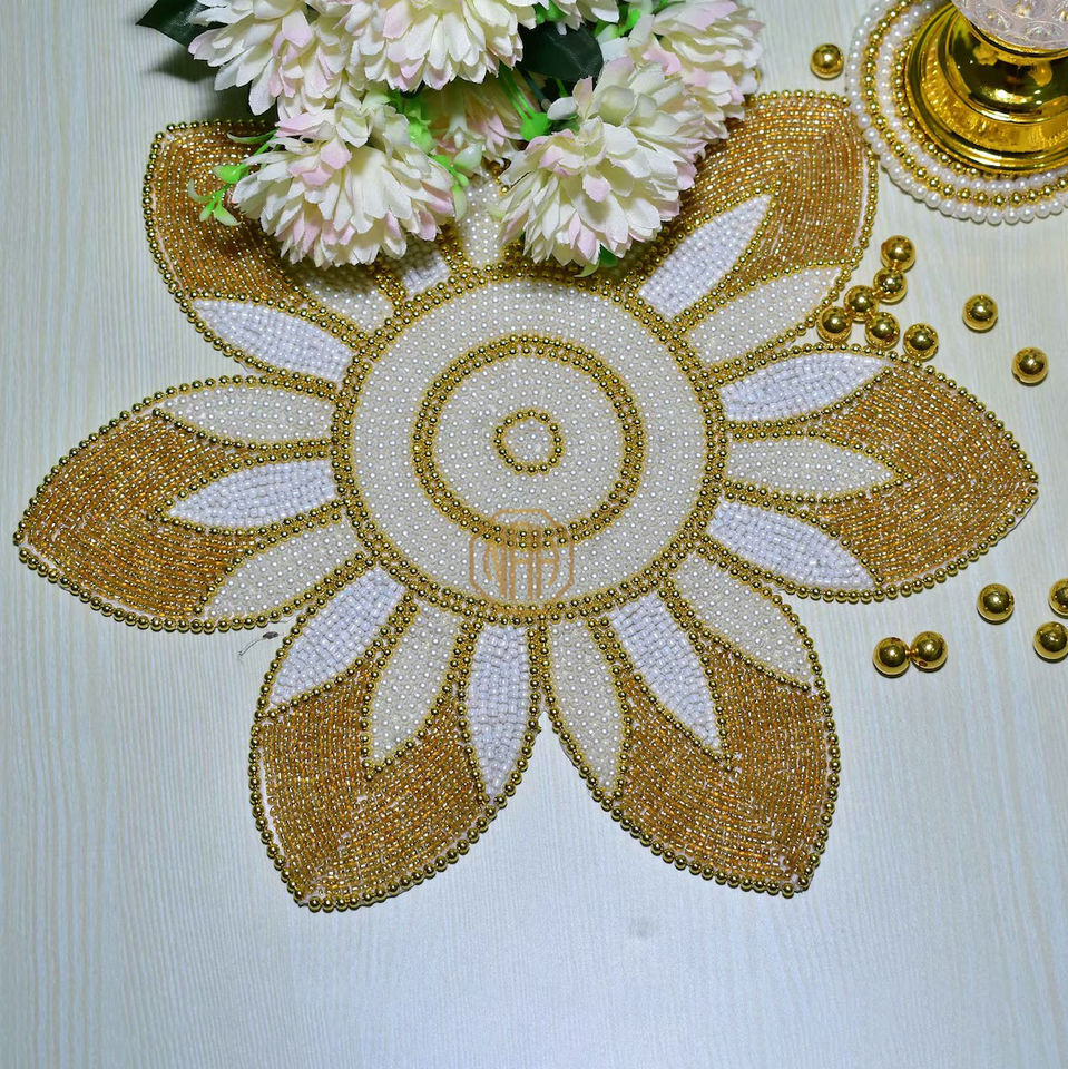 Mantel Individual de lujo hecho a mano antideslizante tradicional con cuentas de perlas de oro blanco para decoración de boda tamaño y forma personalizables