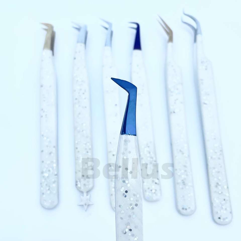 Pinzas de pestañas de agarre perfecto de oro blanco superventas Pinzas de pestañas de volumen personalizadas para profesionales
