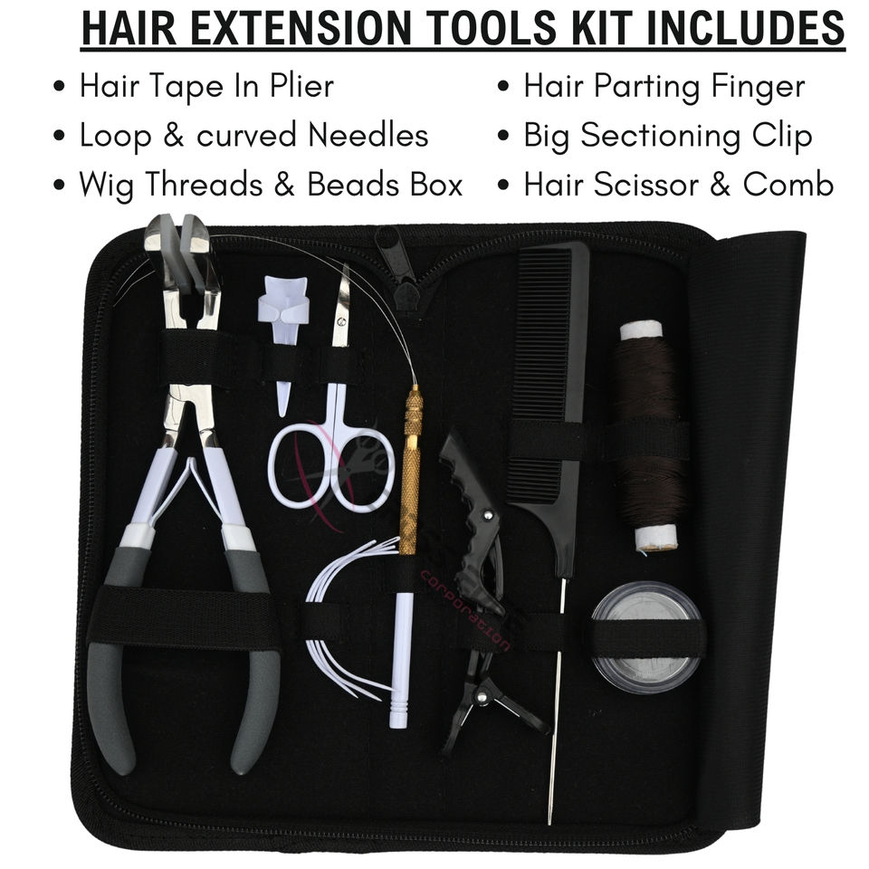 Extensiones de Cabello, Herramientas para Extensiones de Cabello, Kit de Aplicación con, Peluquería de belleza, peluca, hilos, Clips grandes, peine de tijera con dedo para separar