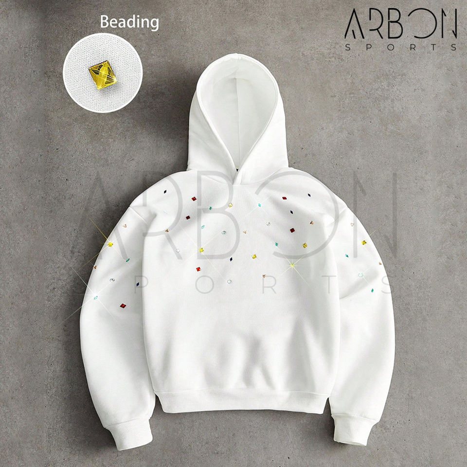 Sudadera con capucha blanca con diamantes de imitación multicolor Buena venta Excelente calidad Diseño único Hombres Out Door Último estilo Sudaderas con capucha con diamantes de imitación