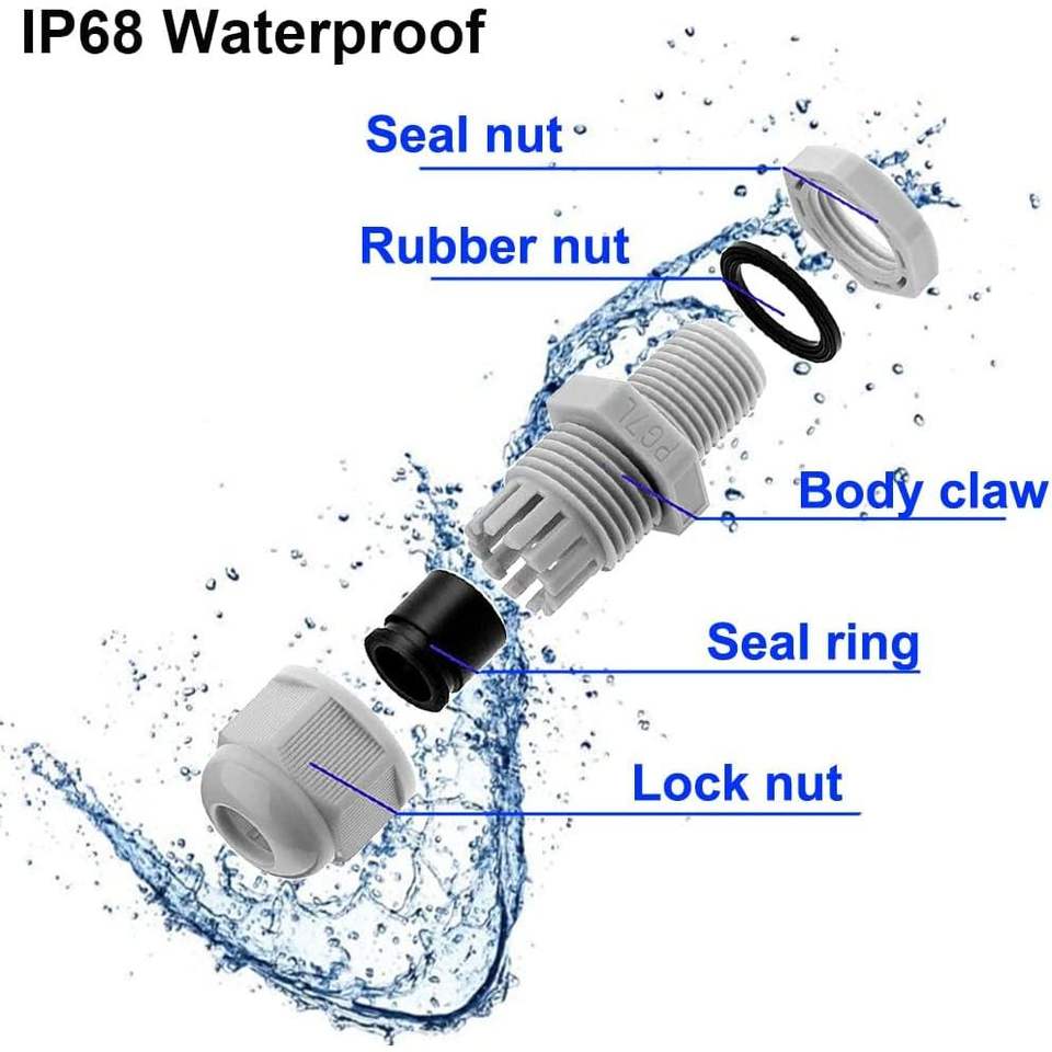 Conector de plástico de nailon con prensaestopas impermeable IP68 blanco con agarre de cable PGPG42 de contratuerca