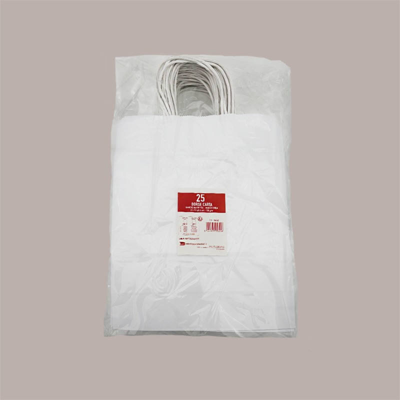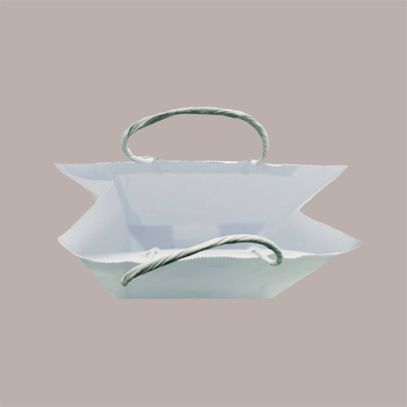 Bolsa de Papel Kraft Blanca con Asa de Cordón 22+10 H 29.5 cm 100 g para Compras o Manualidades, Paquete de 50 Unidades