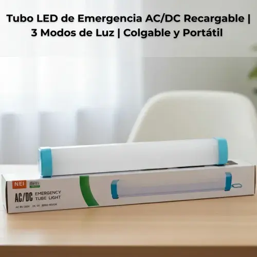 Lámpara de Emergencia Tubular LED Blanca, Recargable por USB