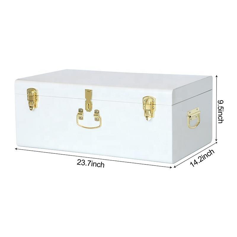Baúl de Metal Blanco Grande, Caja de Almacenamiento Decorativa de Hierro, Baúl para Recuerdos, Baúl para Dormitorio Universitario con Asa Dorada