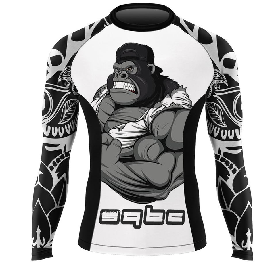Camiseta blanca de manga larga Rash Guard Kickboxing Equipo de entrenamiento de alta calidad y ropa deportiva para correr