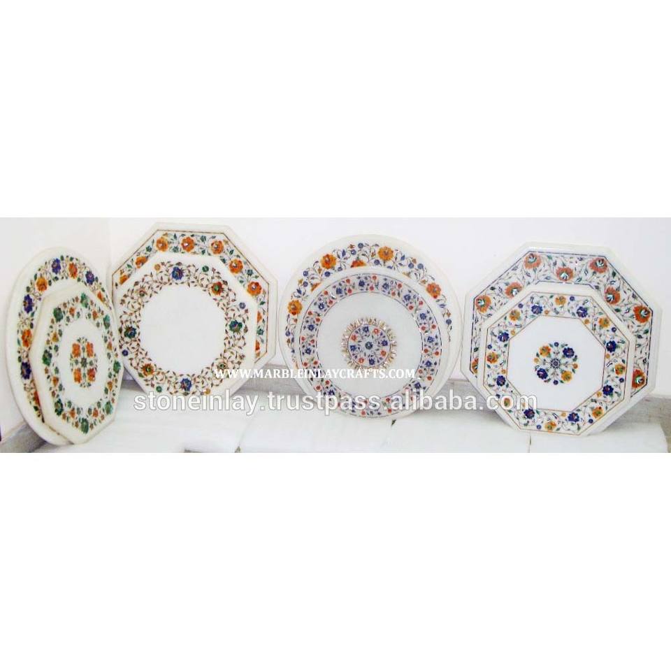 Tableros de mesa de centro con incrustaciones de mármol Makrana blanco