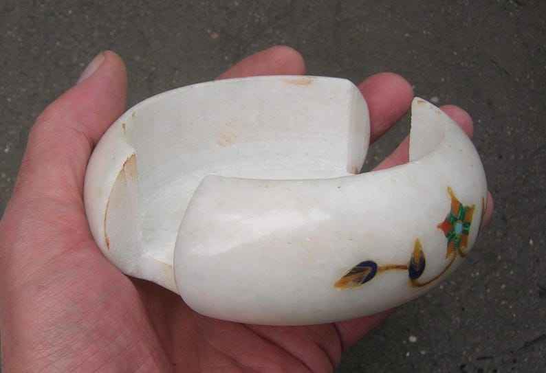 Juego de 6 Posavasos de Mármol Blanco con Soporte, Incrustaciones de Piedra, 8.5 CM de Diámetro, Decoración Vintage para Mesa del Hogar