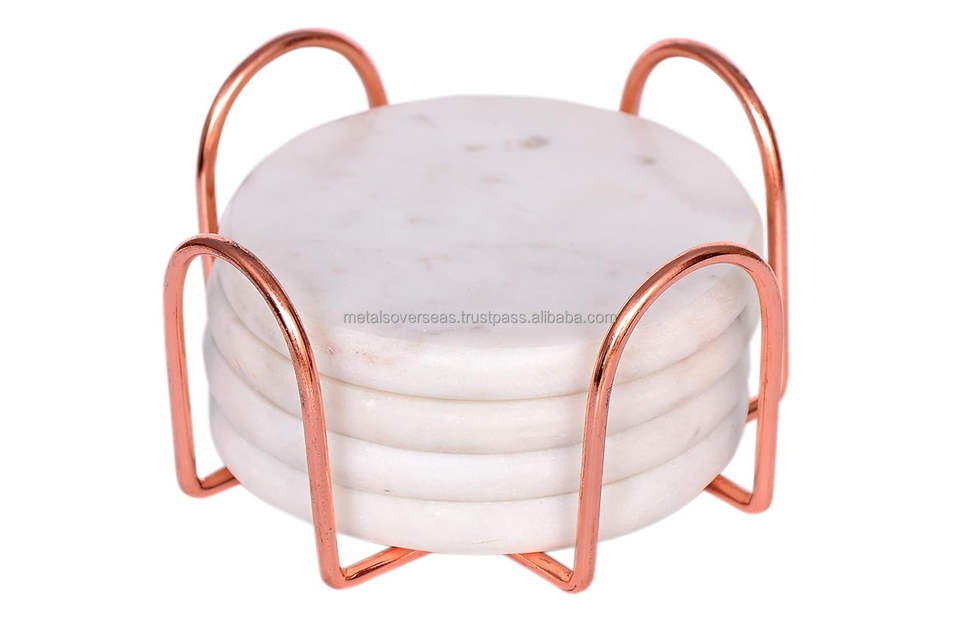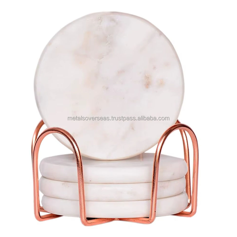 Posavasos de Mármol Blanco Personalizados, Juego de Posavasos con Soporte de Cobre en Blanco, Posavasos para Bebidas