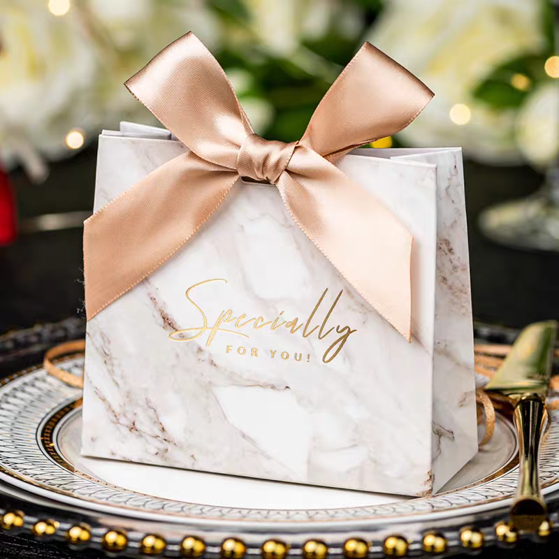 Caja de Regalo de Cartón con Diseño de Mármol Blanco, Forro de Esponja, Cinta Decorativa para Bodas, Recuerdos de Dulces/Chocolate, Impresión con Laminado Mate