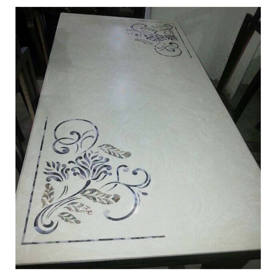Tablero de Mesa Rectangular con Incrustaciones de Mármol Blanco