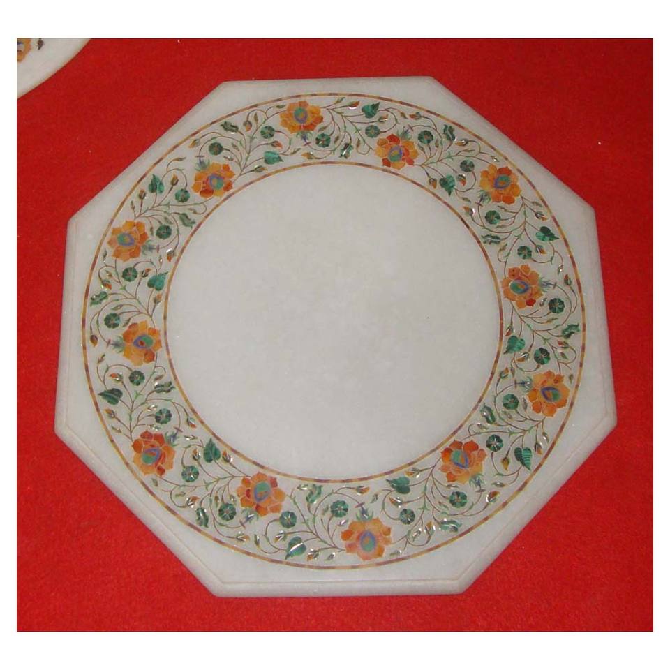Beautiful Home Decorative White Marble Inlay Coffee Table Top