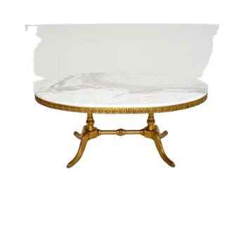 Mesa Auxiliar Redonda de Mármol Blanco | Mesa Auxiliar con Pedestal de Tulipán Dorado | Mesa Auxiliar Moderna con Tapa de Mármol para Sala de Estar y Oficina