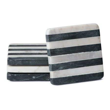 Juego de 4 posavasos cuadrados caídos de mármol blanco, posavasos elegantes para protección de mesa, bodas, aniversarios y inauguración de la casa