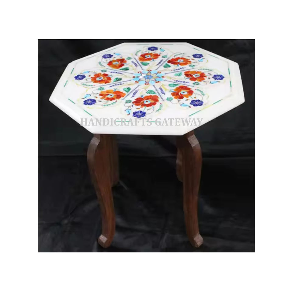 Mesa con diseño de flores únicas de mármol blanco en forma octogonal con calidad de alto nivel para el propósito de la decoración del hogar y del hotel
