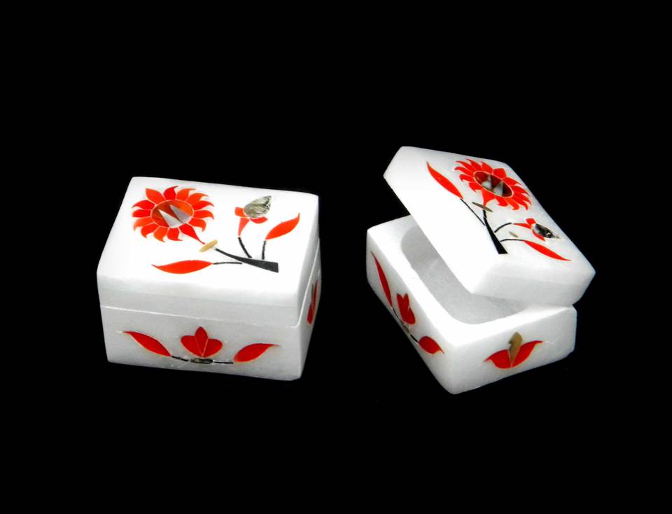 Caja de Mármol Blanco con Incrustaciones, Rectángulo de Círculo Ovalado Cuadrado y Caja de Mármol en Forma de Hexágono, Joyero de Baratija de Alabastro