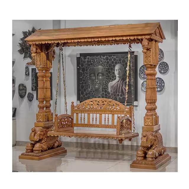 Columpio de madera blanco moderno para exteriores Jhoola Royal diseño antiguo Columpio de madera Jhoola tradicional antiguo pulido elegante Royal