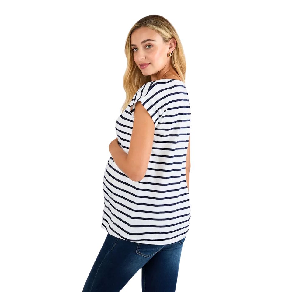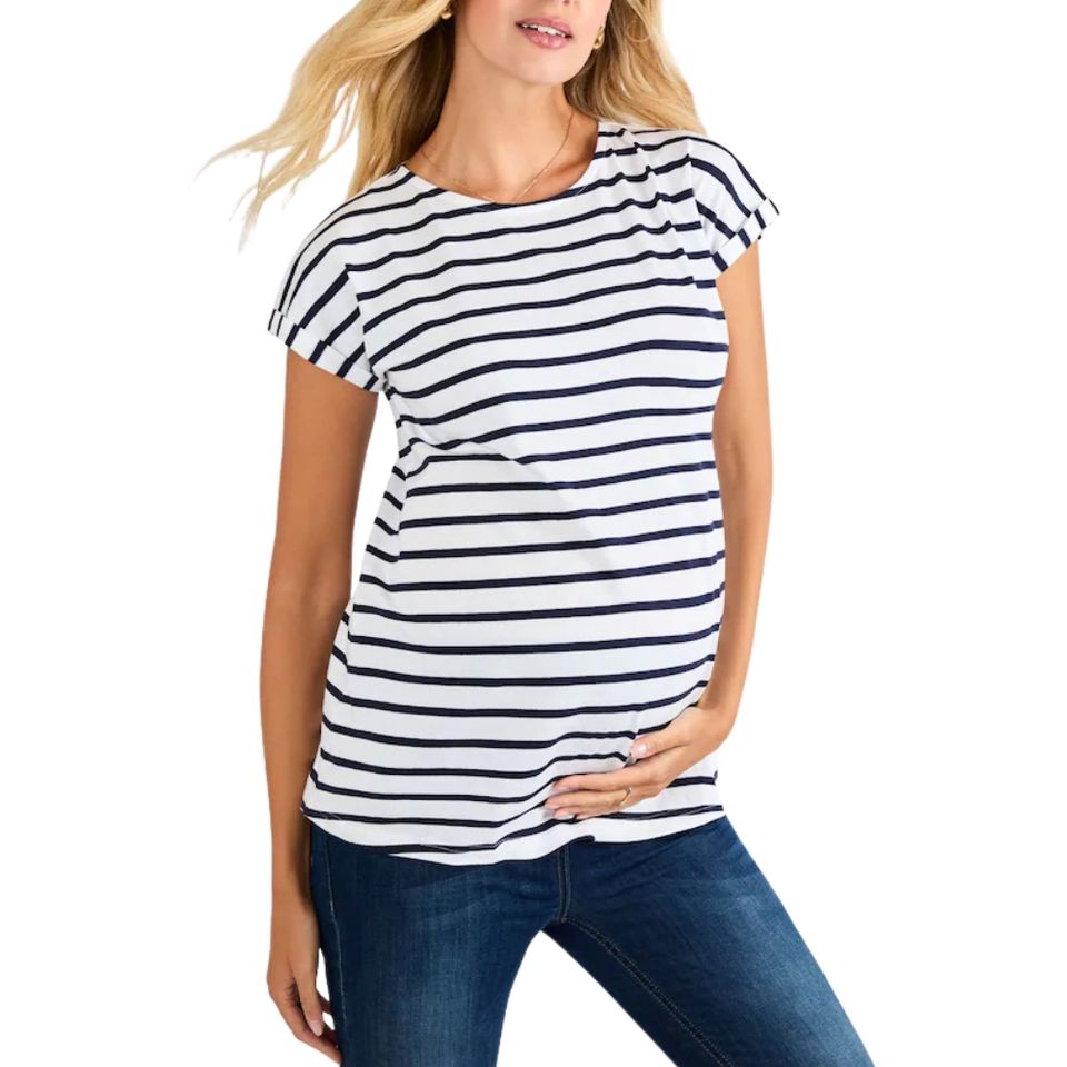 Camiseta Casual de Maternidad con Rayas Blancas y Azul Marino, Algodón Suave y Transpirable, Top de Lactancia para Mujeres Embarazadas, Ropa Cómoda para Amamantar