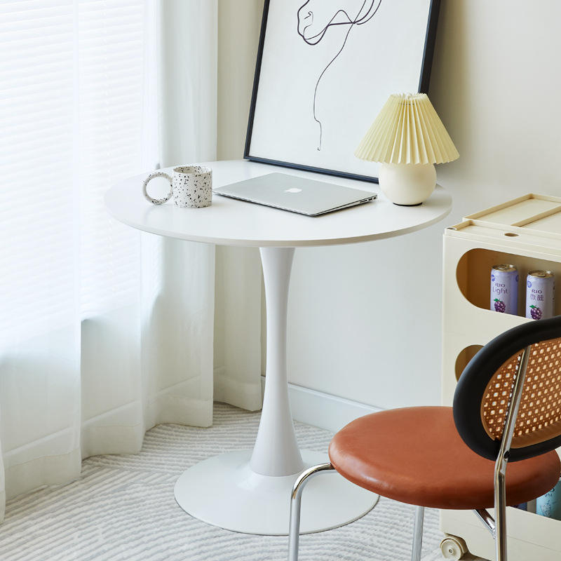 Mesa de centro redonda de estilo nórdico, color blanco, base de plástico con forma de tulipán, fácil de limpiar, muebles para sala de estudio